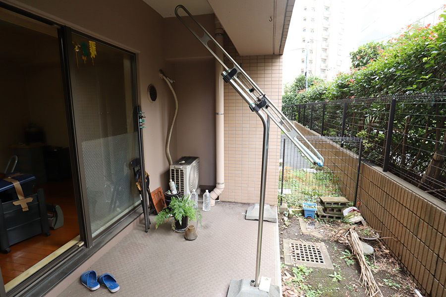 大田区西蒲田 3LDK 【Before】スケルトンからのフルリフォーム。管理組合許可のもと、庭に人工芝を敷きLDからの広々とした空間を演出。